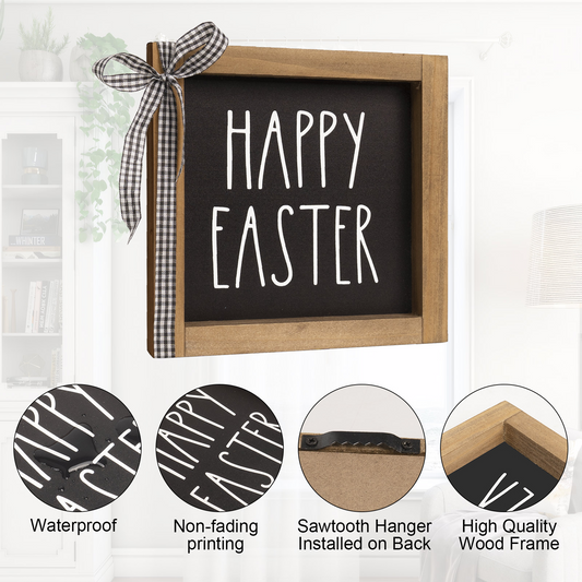 Happy Easter Sign Decor, 6x6In Wooden Easter Wall Decorations for Home Table Shelf Tiered Tray Office Indoor