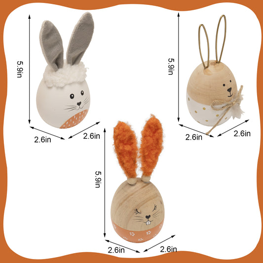 Easter Egg Decor, Wooden Decorative Easter Bunny Eggs Figurine, Indoor Spring Table Centerpieces Shelf Fireplace Mantel Desk Tiered Tray Decorations for Home