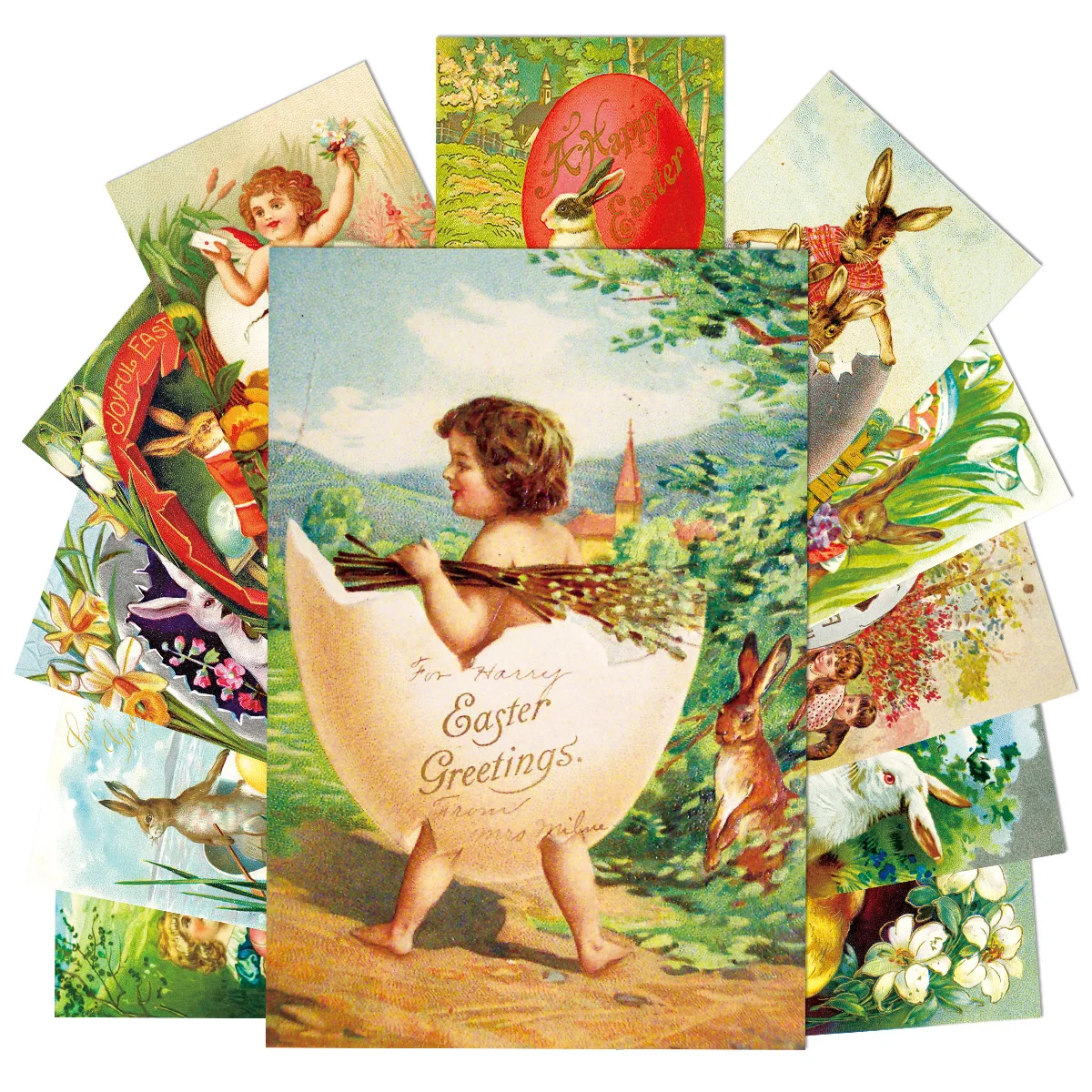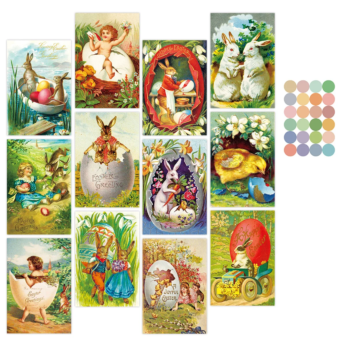 12pcs Easter Bunny Greeting Cards without Envelopes,Victorian Era Antique Postcards, Vintage Wall Collage Kit, Easter Gift Gards